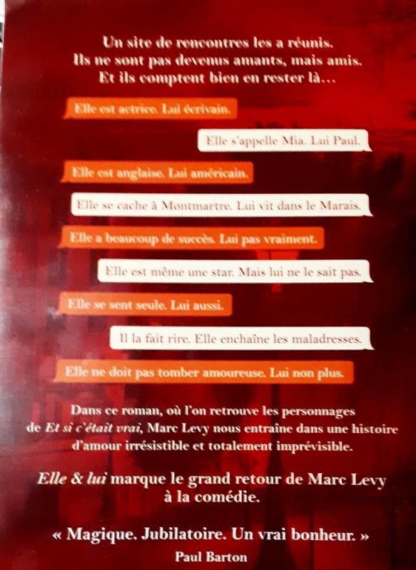 C'est mon amie qui me l'a prêté et j'ai bien aimé. Apparemment, c'est un retour à la comédie pour Marc Levy... gros bisous Françoise