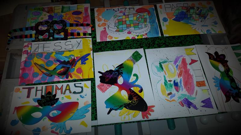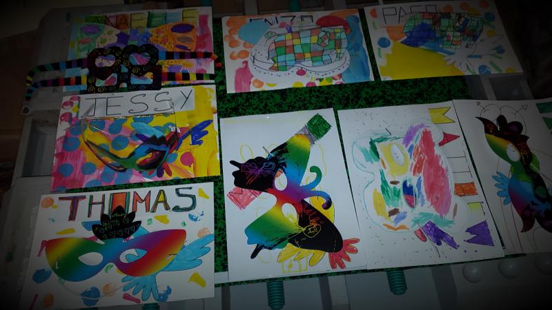 Pour les pochettes à dessins, prendre une grande feuille blanche cartonné type canson la peindre comme vous le voulez, laissez sécher et plier en 2 et scotcher les bords.