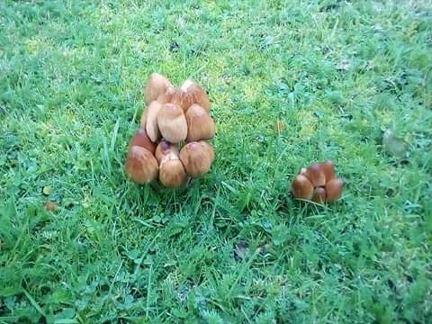 Des champignons d'une ancienne souche il y avait un arbre broussoniettà avant sur ce coin de jardin