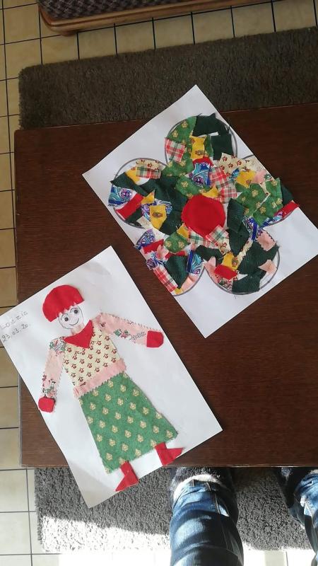 Loëzia à fait du collage  sur une fleur tracée par maman
