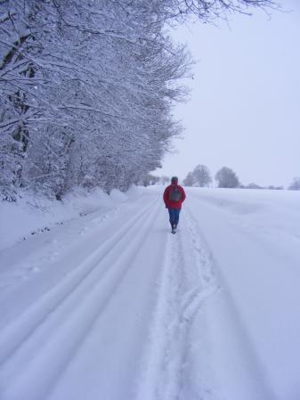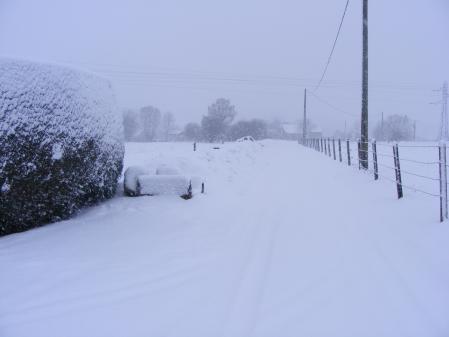 là nous sommes sur la route qui nous conduit au bourg ,il ni a pas eu bcp de passage je peux vous dire que les bottes sont pas assez hautes