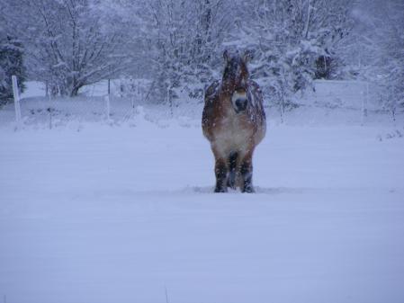 le petit cheval des voisins me parait bien immobile comme engourdi par le froid