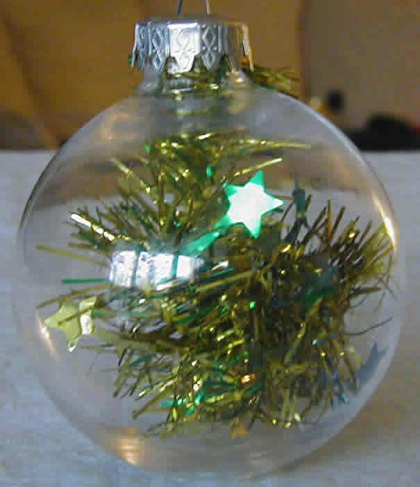 Des boules transparentes pas trop onéreuses les remplir avec ce que vous voulez des perles ou boules de houx ou petites pommes de pin mini dans la nature , des bouts de guirlandes ,coller des paillettes dessus etc!