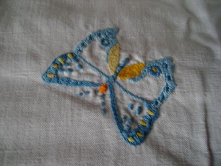 Un mouchoir brodé .Maintenant on ne les brode plus à l'initiale du "propriétaire"..Et les mouchoirs on s'en sert encore ??? On préfére les KLEENEX ...Eh bien pas moi .