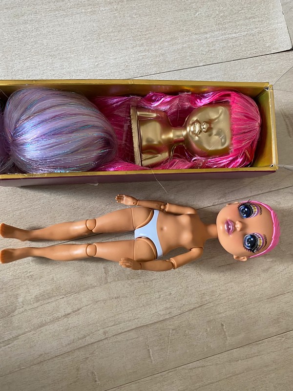 le fait qu'elle ait des perruques pour pouvoir en mettre d'autres que j'ai àla maison, une poupée qui est dans sa boite depuis son achat à une seconde tenue, je pourrais donc l'habiller aisément