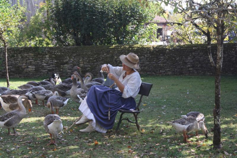Ambiance bucolique avec cette gardienne d'oie...
