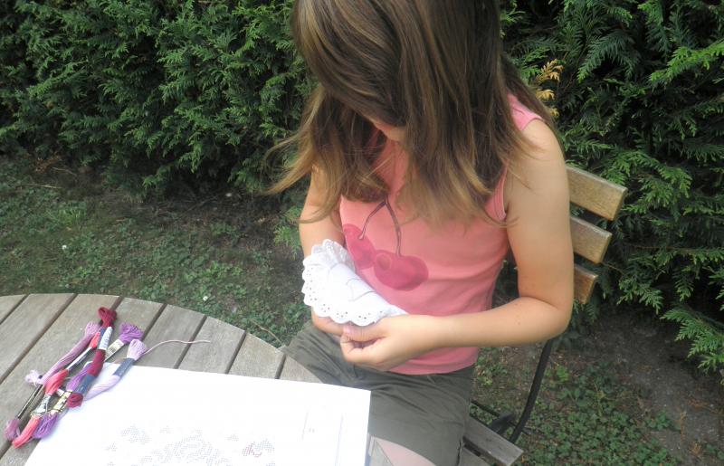 Non seulement,elle a brodé quelques petits coeurs,mais,aussi le 'P' de son prénom,et,celui-là,sans modèle!