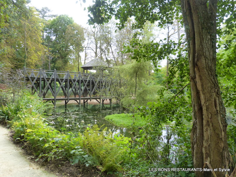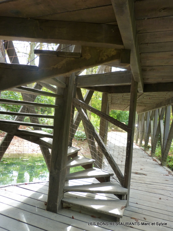 À l'entrée du jardin, nous traversons le pont à deux niveaux imaginé par Léonard de Vinci!