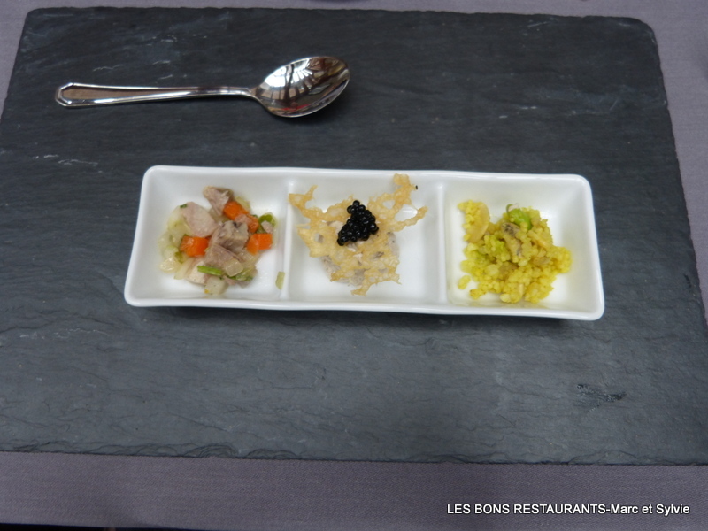Pour accompagner cet apéritif nous commençons notre dégustation par des amuse-bouches bien agréables:
