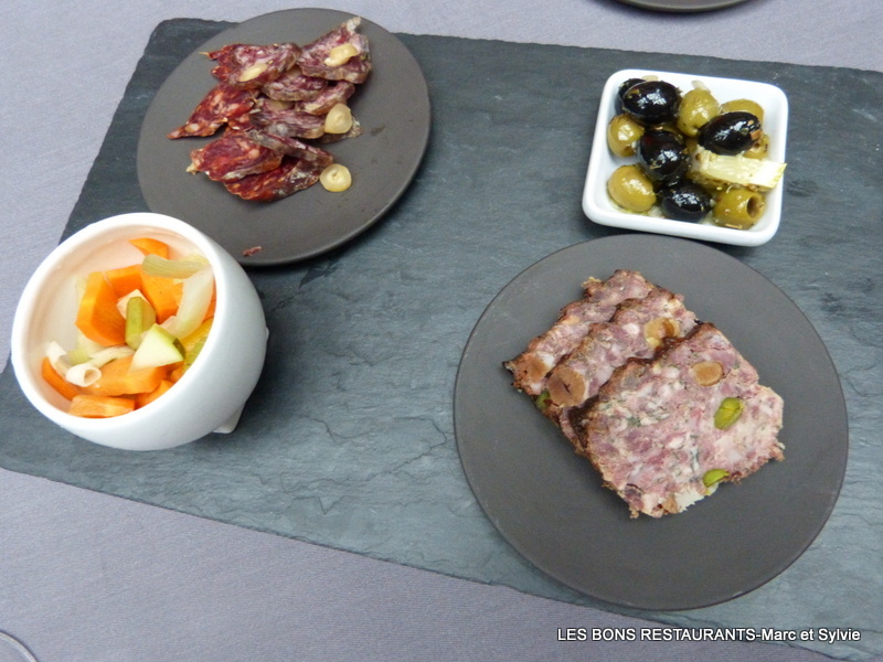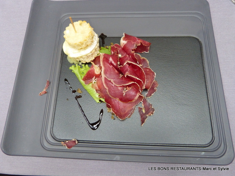 L'entrée est composée d'une assiette de jambon de sanglier et son chèvre chaud.