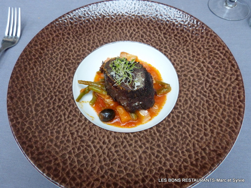 La joue de boeuf a été confite. Elle est servie avec des petits légumes!