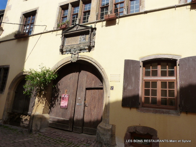 Construite en 1574 pour le gourmet Ortlieb, cette maison comporte deux portes cochères ont l'une est taillée en biais pour faciliter le passage des attelages! Un gourmet est, à l'époque, un intermédiaire assermenté entre les vignerons et les marchands de vin! Outre les fenêtres à meneaux, un bas-relief orne la façade!
