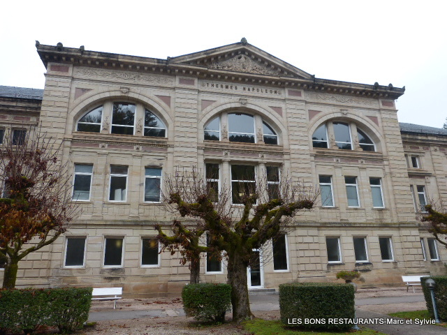 Edifiés au dessus de sources chaudes, les thermes et son grand hôtel, situés avenue des États-Unis, constituent un ensemble unique en France. Vous pouvez voir ou revoir notre balade vosgienne depuis le début en cliquant sur ce lien! Cliquez sur les photos pour les agrandir! (10 clichés) Construits à Plombières en 1857 sur l'initiative de Napoléon III, les "nouveaux" thermes sont flanqués de part et d'autre, de deux grands hôtels.