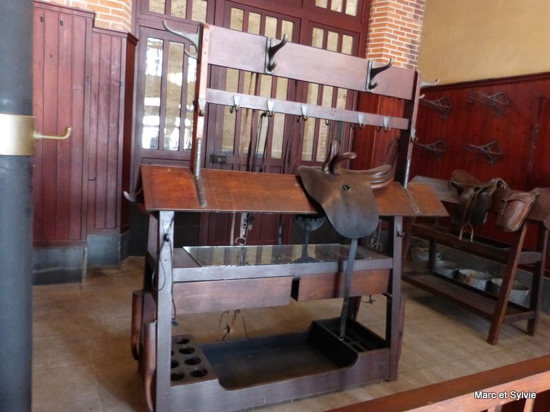 La sellerie renferme de somptueux harnais réalisés notamment par la maison Hermès.