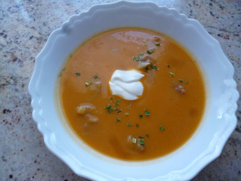 Je vous propose une recette simple, gourmande et encore bien appréciée en ce début avril, un velouté de patates douces et marrons !