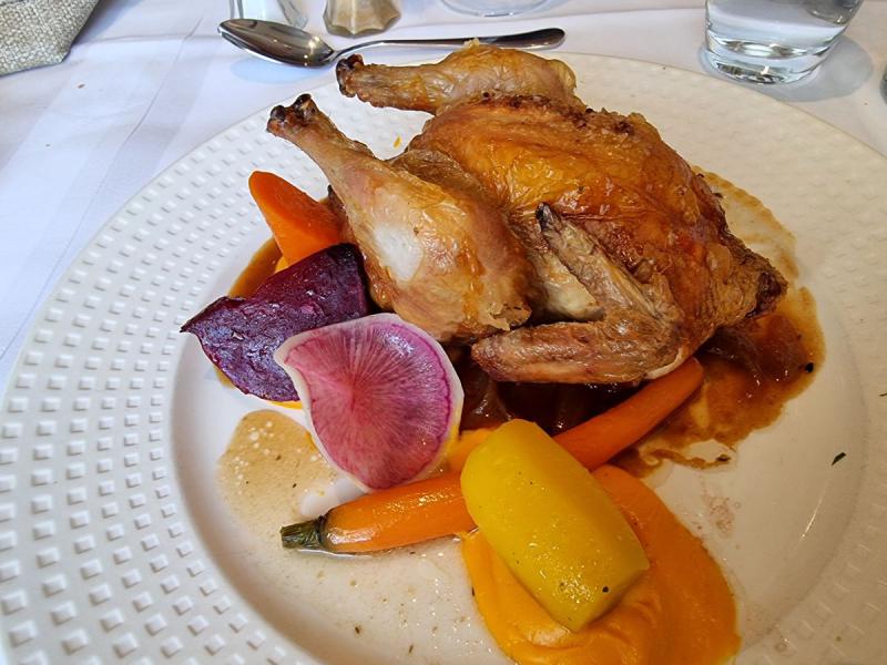 Lilly et moi avons pu goûter pour une première fois au poussin façon grand mère. Les plats sont accompagnés de frites ou de spaetzle.