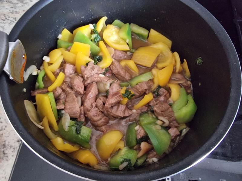 Aujourd'hui, c'est Nicolas qui cuisine et il s'est inspiré de la recette "Boeuf sauté aux poivrons" du site "Le Riz Jaune" !