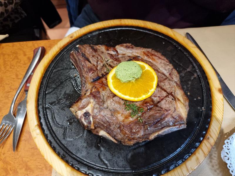 La côte de boeuf à l'os grillé est magnifique et fait le bonheur de notre ami.