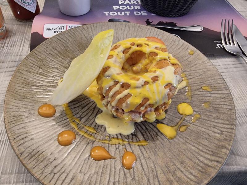 Nicolas choisit un Paris-Brest thon saumon fumé et crevettes, sauce velours.
