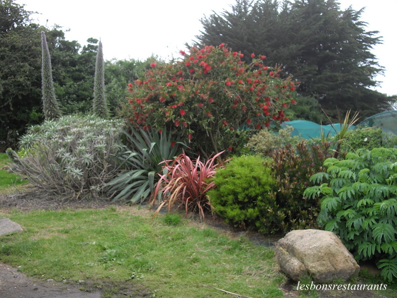 Cette chapelle conserve une statue de Notre-Dame de Keranroux. "Notre dame de Keranroux, Ordonnez au vent de souffler en tempête, Pour que personne ne vienne de la grande terre, Manger nos frères et nos pois verts" Cette prière semble avoir été motivée par le fait que les gens du continent venaient, le jour de la fête de la chapelle, voler les jardins des Bréhatins en profitant de leur absence. Nous nous dirigeons vers le phare du Rosédo et la végétation est toujours aussi luxuriante!