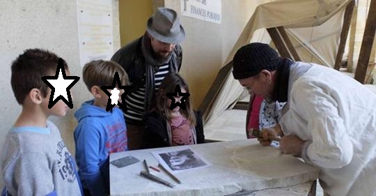 Début septembre, la Conseil Municipal de ma petite commune avait décidé de donner un nom à l école du village qui regroupe les enfants des 4 communes limitrophes le projet a donc été porté depuis plus d un an et on arrivait à l étape finale tout d abord il a fallu lui trouver un nom le choix s est porté sur une jeune institutrice qui avait été nommée après l obtention de son diplome et qui part ailleurs a fait partie du réseau de la Résistance local - après accord de la famille le travail a pu commencer il a été fait appel à un sculpteur de pierre local (un jeune qui avait été copain de foot de mon fils d ailleurs et qui a une belle renommée) et à partir du portrait de la jeune femme il a réalisé la plaque - travail qu il effectuait lors d expo auquelles il participait d' où j ai pu obtenir cette photo d ailleurs