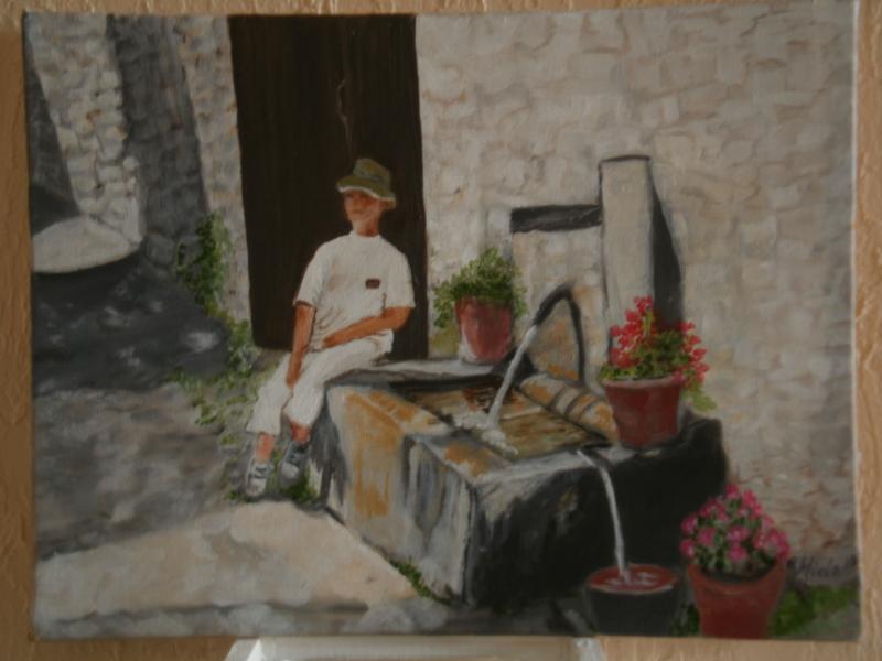 Tableau à l'huile, sur chassis, d'après une photo prise il y a presque 9 ans , à Colmars les Alpes mon petit fils Luca avait alors 5 ans.Que de bons souvenirs !!