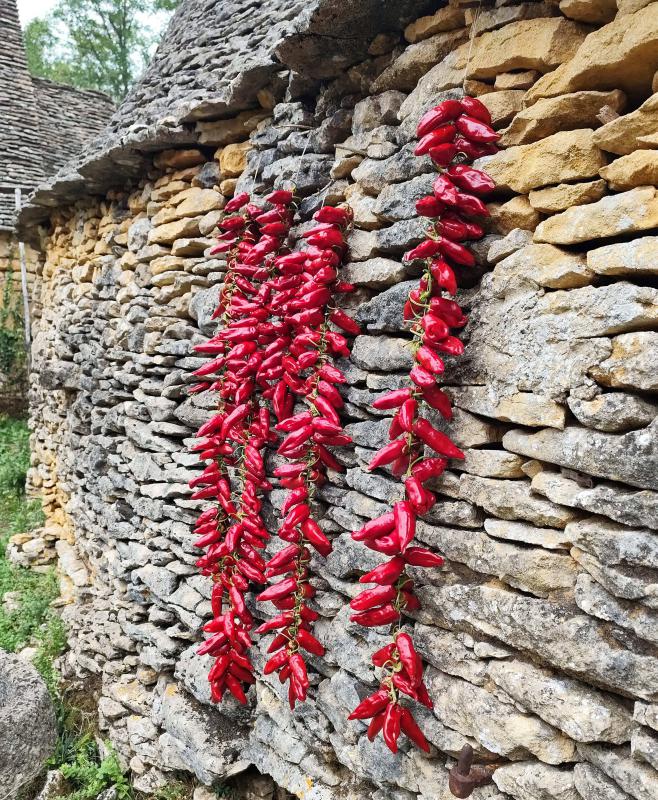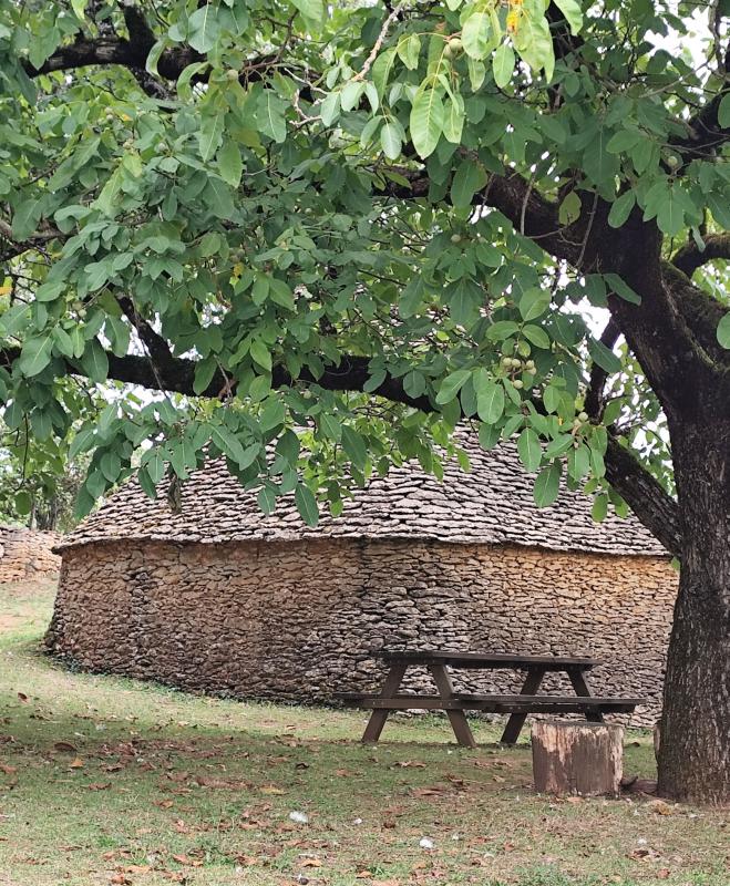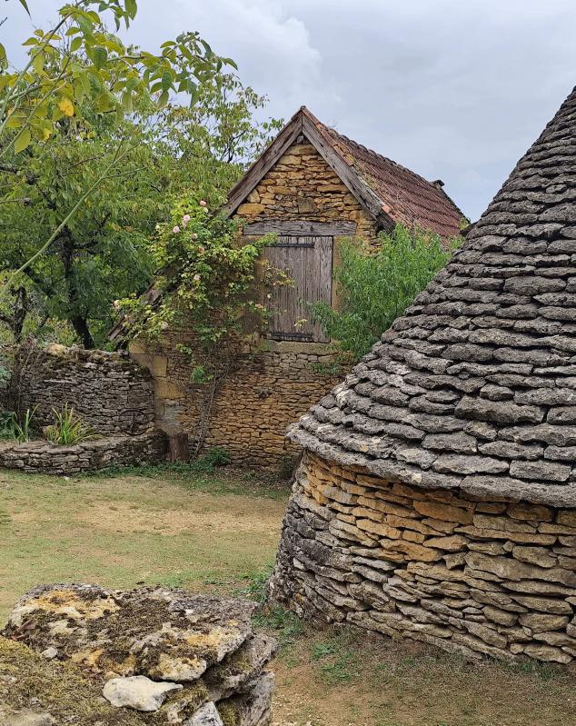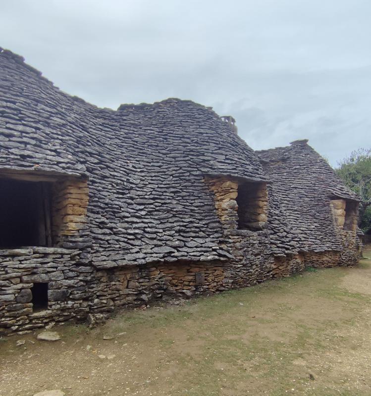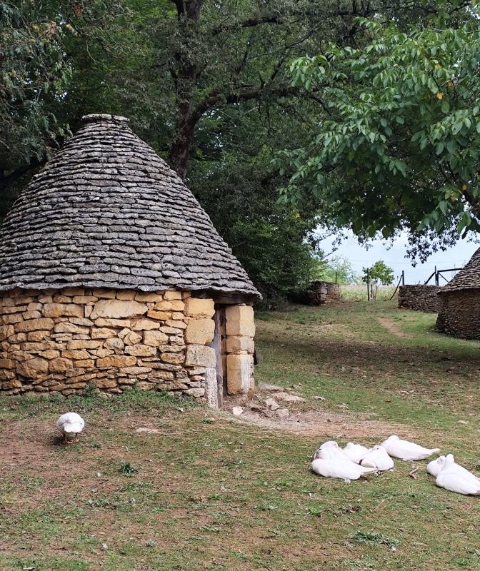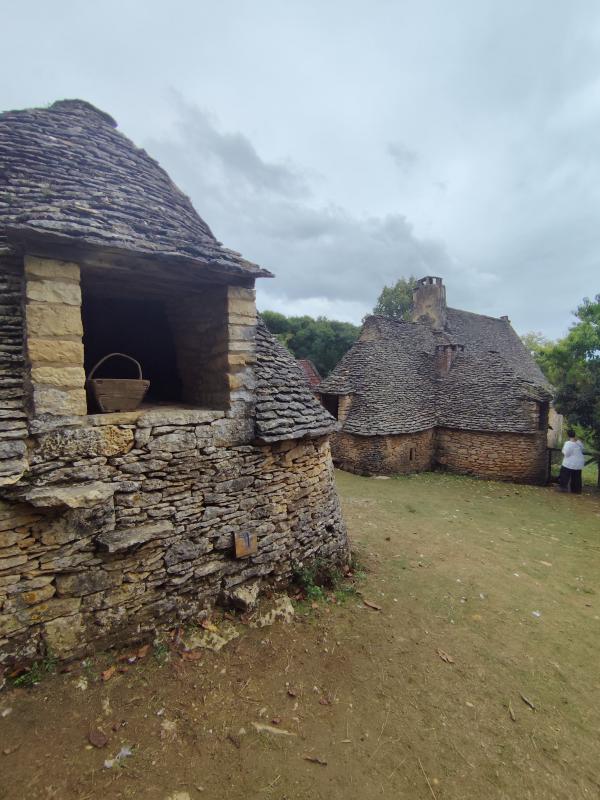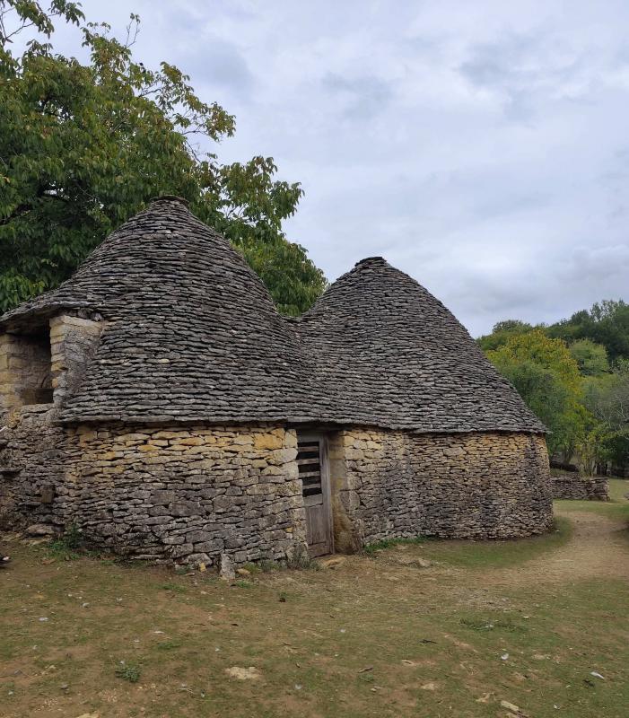 Ces cabanes classées monument historique sont aussi appelées 'bories'. Elles furent l'habitat rural des bénédictins jusqu'au 15éme siècle. Depuis 1950, ce patrimoine est conservé au sein d'une famille. C''est le petit -fils qui continue de le faire vivre après l'avoir transformé en musée à ciel ouvert. En 1949, ses grands-parents héritent de leurs parents ce 'tas de cailloux' ...ils s'y installent après l'avoir aménagé, tout simplement car ils n'ont pas d'autre endroit où se loger. En 1968, ces cabanes sont reconnues pour la conservation du patrimoine, mais ce n'est qu'en 1995 que cet ensemble de bories est classé monument historique. Jacquou le Croquant y sera tourné en 1967, suivi par une quinzaine d'autres tournages. Nous sommes accueillis à l'accueil par le propriétaire du site qui habite d'ailleurs sur place. Ces cabanes du Breuil se trouvent sur la commune de Saint André d'Allas en Dordogne, pas très loin de Sarlat.