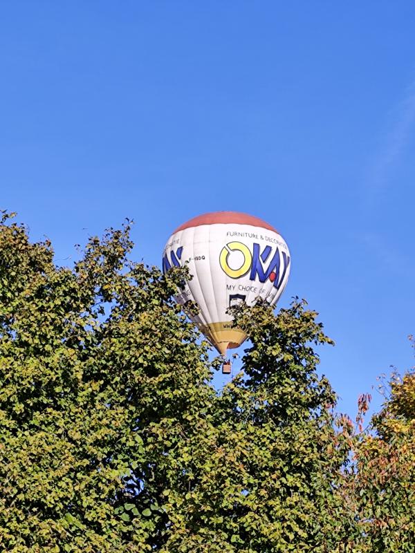 Jolie surprise dans le magnifique ciel bleu hier matin ; 2 Montgolfières sont passées juste au-dessus de la maison et du jardin à très faible hauteur, vue qu'elles se sont posées à 500 m d'ici!