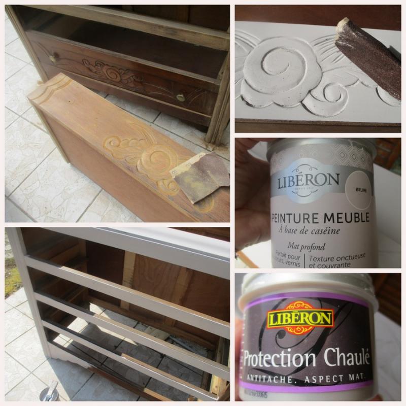 Sortie de ces travaux; Il y a quelques jours, je vous montrais le relookage d'un petit guéridon; c'est ici! A peine terminée la remise sur pied de ce joli guéridon, j'ai 'attaqué' une commode! J'ai récupéré cette vieille commode en même temps que ce guéridon, comme ce dernier; elle était en très mauvais état, très encrassée; elle n'avait pas été entretenue depuis de nombreuses années et un de ses pieds était même cassé; mon bricoleur est passé par là! Pour le reste; il suffisait de quelques bons produits et surtout de l'huile de coude! Mais quand on aime ce que l'on fait; ce n'est pas une corvée! Après un bon ponçage et un dépoussiérage minutieux, le plus dur était fait; je pouvais passer au côté peinture!