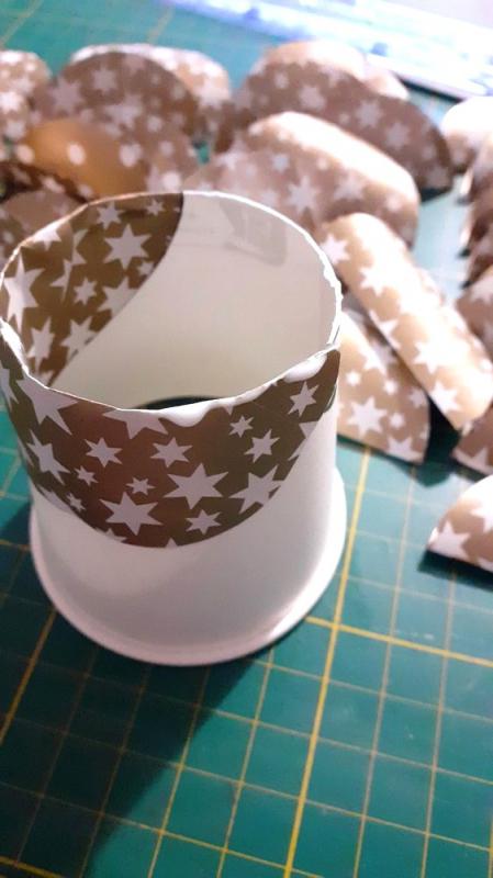 Faites ainsi tout le tour du gobelet puis faites une autre rangée et ainsi de suite...