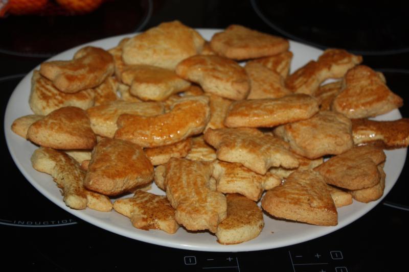 Etaler un peu de jaune d'oeuf avec de la cannelle sur les biscuits, |