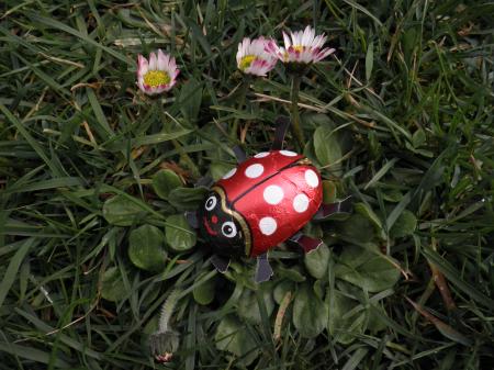 Comme je vous l'ai dit dans l'article précédent,la cloche est déjà passée,d'ailleurs comme vous pouvez le voir,il y a de drôles de choses dans mon jardin!De grosses coccinelles,des lapins,des oeufs,un tas de choses attendent sagement que nos 3 petits enfants arrivent...