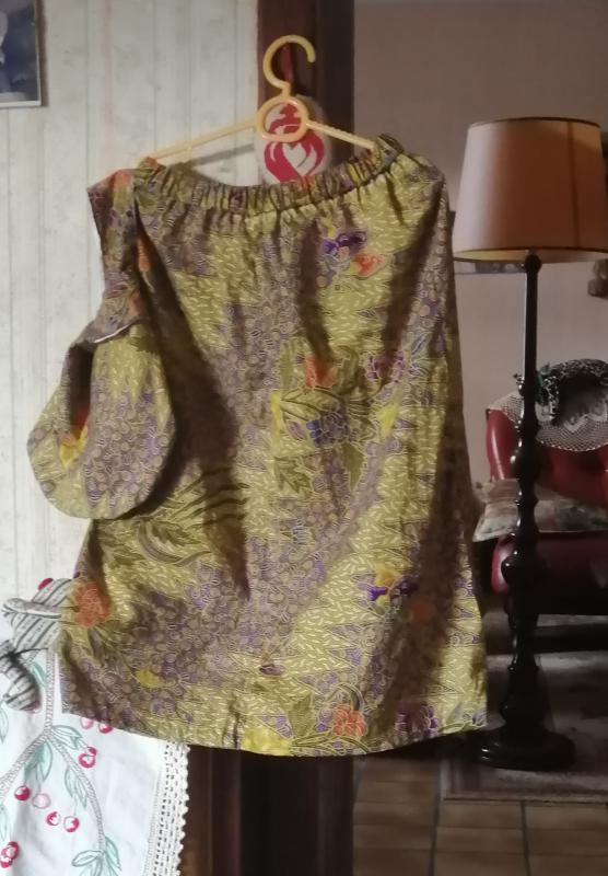 Bon, c'est terminé.. Voilà une jupe et le petit sac assorti.. Il a fallu encore jouer avec le tissu... C'est la pénurie 😂😂😂.