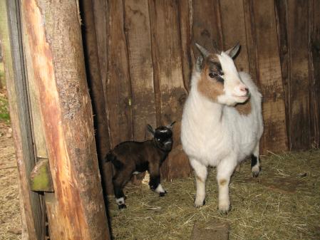 Voici les dernièrs arrivés, 2 petits boucs nains de 2 mois et demi. Pour le moment ils explorent leur maison, je pense que demain il feront le tour du propriétaire. Bonne nuit les petits !!!! pom pom pom .....