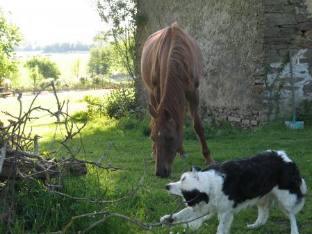 Il y a 3 mois déjà c'était la pleine lune, La petite boule est devenue une belle petite chienne, de ce fait elle s'appelle Louna. Evidemment elle nous fait craquer. Elle commence à bien obéir, sait s'assoir et comprend le "non". Elle adore cacher les bottes et chaussons de son maître et courrir après les poules ! Maman border collie, Papa ?? Kanel a du aller voir le chien du voisin qui est un chien de chasse genre setter.