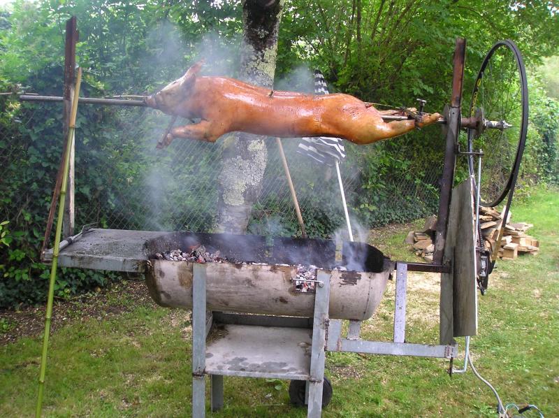 le cochon à la broche au barbecue