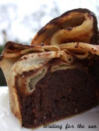 Pour la Pâte à Crêpes : 1 cuillère à soupe de rhum 1 cuillère à soupe de confit d'amandes (facultatif) 170 g de farine 30 g de sucre 2 œufs 25 g de beurre fondu 350 ml de lait 1 pincée de sel Pour le Moelleux Chocolat : 150 g de chocolat 1 zeste d'orange non traitée 80 g d'amandes réduites en poudre 25 g de farine 80g de sucre 4 œufs 100 g de beurre 1 pincée de sel
