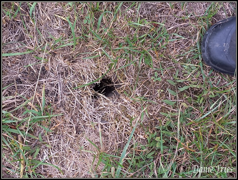 L'oseille, mon homme adore ça ! OH! OH! OH ! voici un joli petit trou tout frais !  vilaine petite bête, il y avait de la place à côté pourtant, bé non, il faut "aérer la ciboulette" Mais à qui donc appartient ce terrier ????  Un 2ème trou  dans la terre, euh ! pardon, dans les cailloux ! quelques seps de vignes pour le barbecue ! Et Voilà un peu de jaune, "du soleil" pour terminer, et vous souhaitez une très bonne semaine.