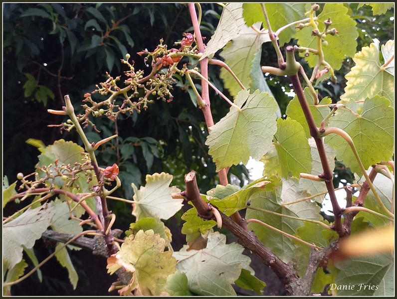 Voici mon raisin au jardin dept 59, après le passage des frelons asiatiques !  Donc j'ai fini par tout couper car ça devenait trop dangeureux pour moi. (eh ! je veux bien partager! mais pas tout quand même !) Ils sont très agressifs. Je n'ai pas peur, mais il vaut mieux être prudent ! Mieux vaut prévenir que guérir ! C'est bien connu. Je les comprends car cette année ici dans mon jardin du Nord, il était particulièrement abondant et surtout très très sucré   mon raisin au jardin dept.59, il y a quelques semaines Cette année il était très généreux, très productif et pas malade comme l'an dernier. La vigne est très vieille au moins 80 ans, certainement beaucoup plus selon ce que j'ai entendu dire. Je ne l'ai jamais traité, simplement taillé. Je me demande si je le laisse tel qu'il est ou si je le raccourcis cet automne pour le rafraichir !   |