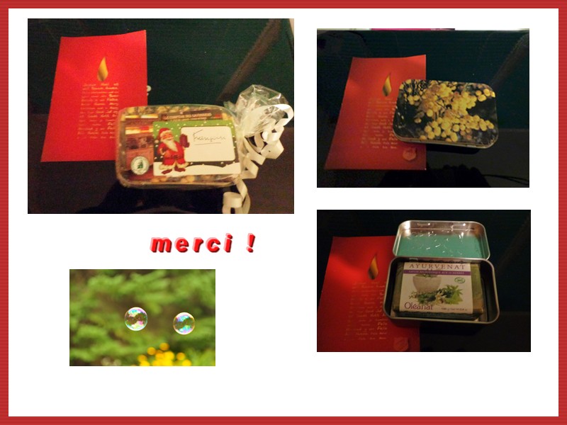 au courrier hier, une jolie boîte, un savon tout nature qui sent hummm bien bon et de gentils voeux !