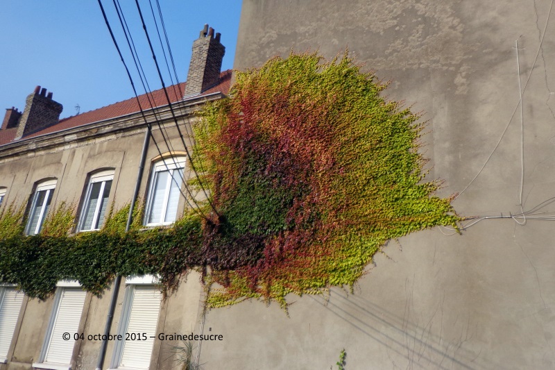ce pan de mur a attiré mon regard, une forme de feuille ou de poisson en... feuilles d'automne.
