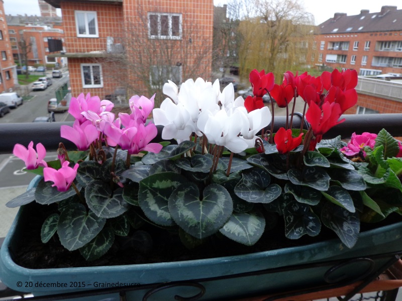 de l'autre côté, les cyclamens s'épanouissent sous la douceur hivernale...
