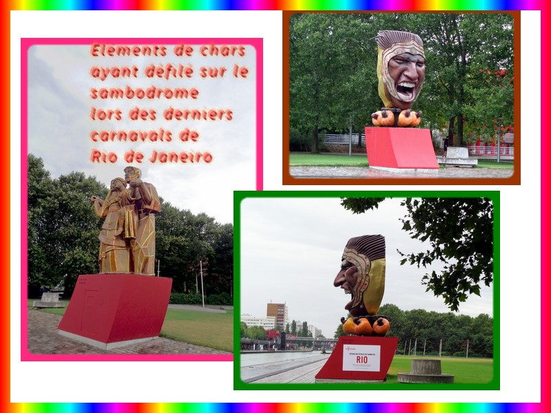 le long de la berge notre regard est attiré par de grands totems... Ils ont été utilisés sur les chars lors de précédents carnavals à Rio....