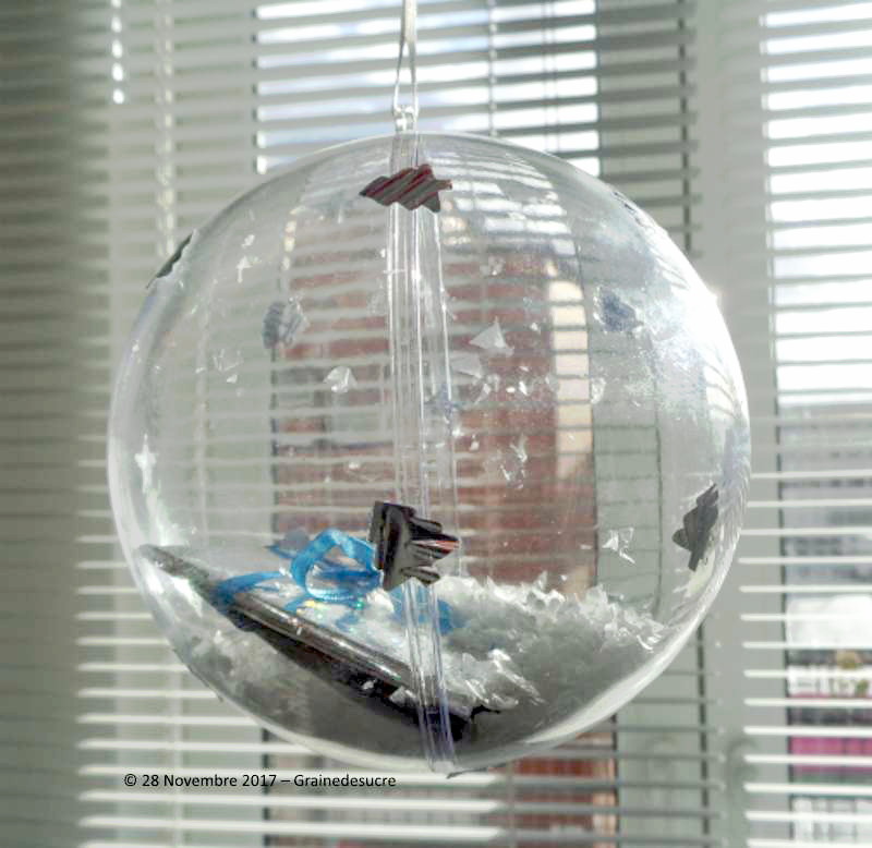 avec de la "neige" et des objets... nous n'avons pas fini mais c'est un vrai plaisir que d'inventer ces décorations...