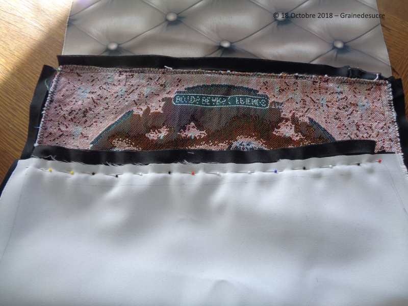 reprenons donc là où j'en étais arrivée.... poser le tissu du "dos" endroit contre endroit avec le passepoil à l'intérieur...
