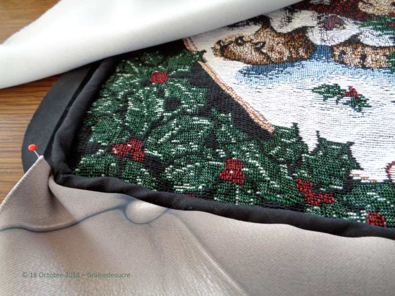 Prévoir le repli intérieur de ce tissu pour empêcher le coussin intérieur de ressortir...
