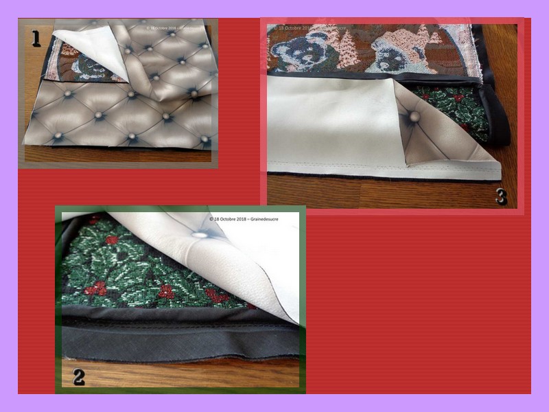 Au niveau de la pliure du grand morceau du dos, faites une surpiqûre pour éviter que le bord ne "godille"...