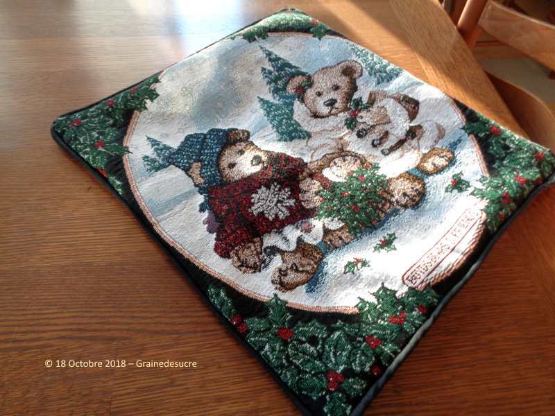 Bon... novembre 2016 puis novembre 2017 et presque novembre 2018, j'ai mis le temps !!! mais je suis contente d'avoir réussi à mettre un passepoil et que le coussin ait une nouvelle vie !!!