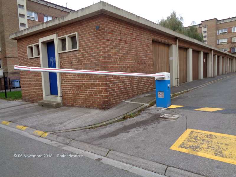 Pauvre barrière !!! quand on pense que "normalement" elle est au-dessus de la ligne pointillée jaune au sol !!!! Je ne sais pas qui a fait ça mais si c'est un véhicule il ne doit pas être dans un bel état !