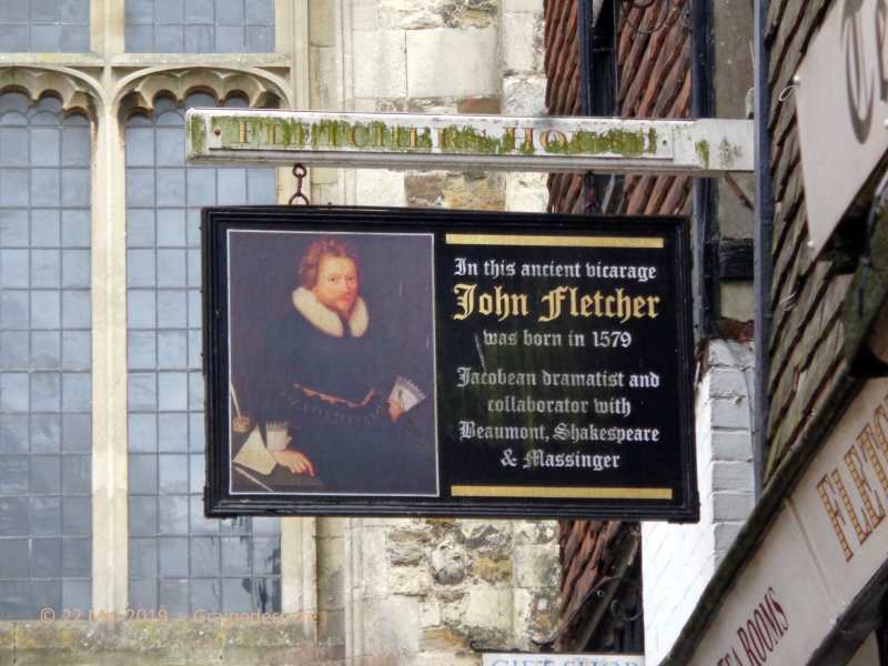 Juste avant d'arriver à l'église, une enseigne nous indique la maison (ancien presbytère) de naissance de John Fletcher (dramaturge, fils de l'évêque de Londres) qui a écrit de nombreuses tragi-comédies...